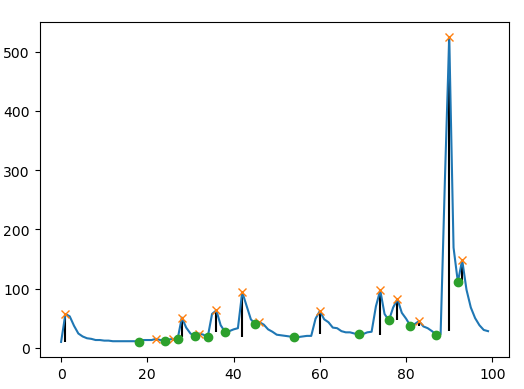 prominences = peak_prominences(x, peaks)[0]