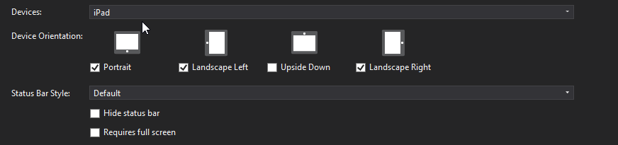 </array>如果这不能正常工作,您也可以在代码中解决这个问题。在AppDelegate.cs中,尝试重写GetSupportedInterfaceOrientations。
