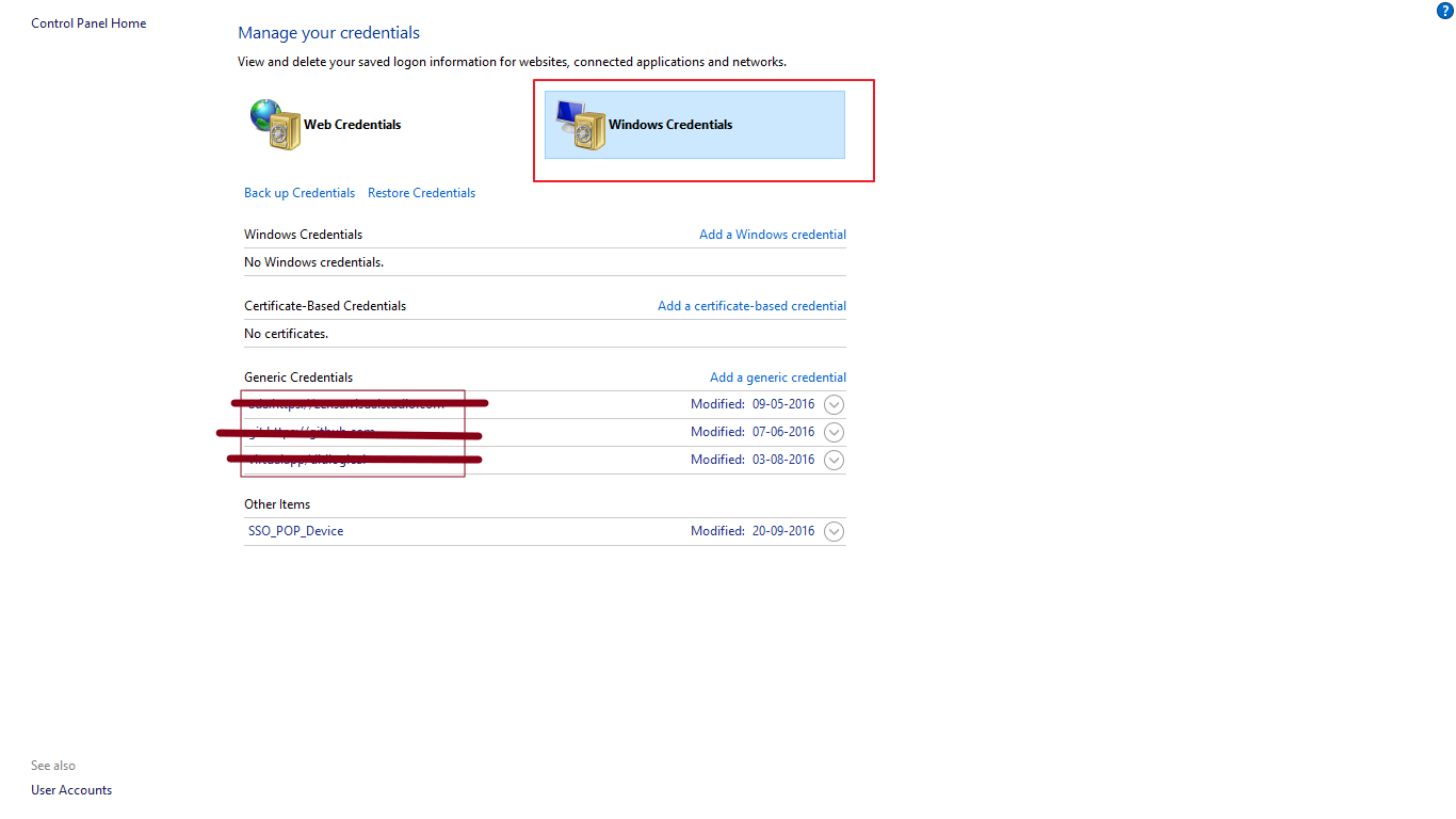 如果窗口出现问题,则从windows历史记录中删除凭据。
