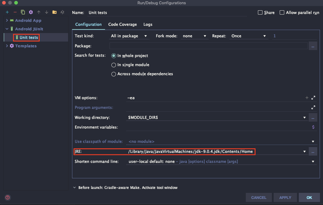 [Robolectric] WARN: Android SDK 10000 requires Java 9 (have Java 8). Tests won't be run on SDK 10000 unless explicitly requested.