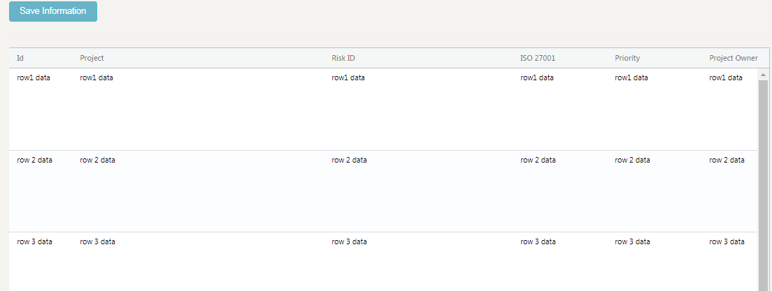 我已经使用ag网格构建了这个网格,我正在尝试通过单击saveInformation按钮将其数据存储在mongodb数据库中。