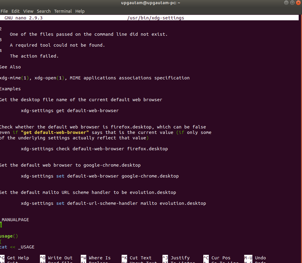 您可以将xdg-设置检查为sudo xdg-settings --list,还可以更改xdg-设置配置。通过编辑sudo nano /usr/bin/xdg-settings