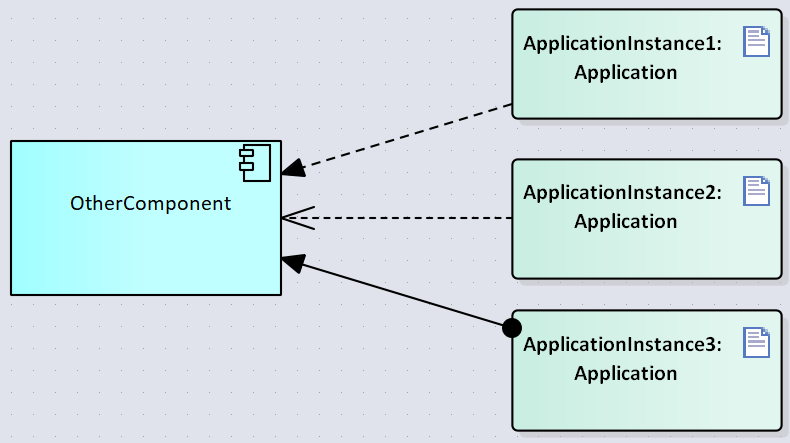我想使用在ArchiMate中对水平缩放的应用程序进行建模。因为我不能在图中两次包含相同的元素:如何显示一个应用程序将在多个实例中运行?