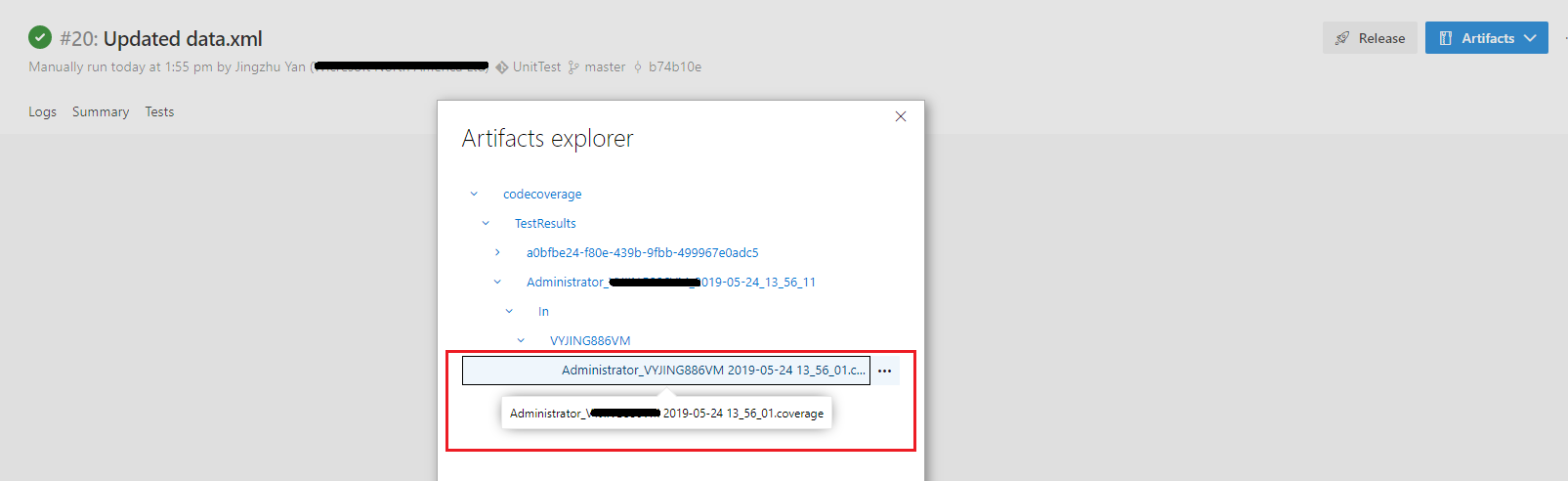 工件-资源管理器显示了上传的报告,总之,我得到了代码覆盖结果。