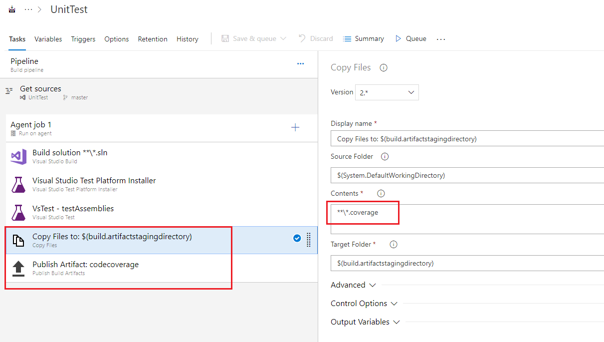 见:https://developercommunity.visualstudio.com/content/problem/385331/code-coverage-results-not-rendered-in-build-result.html https://developercommunity.visualstudio.com/content/problem/398209/build-results-tab-code-coverage-does-not-show-up.html