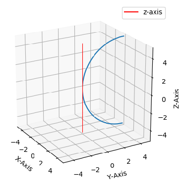 ax.plot((0, 0), (0, 0), (-r, r), '-r', label='z-axis')