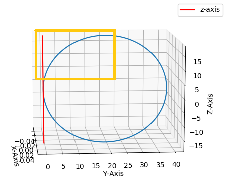 我试图从一个与Z轴相切的圆上得到一个弧线,如下图所示,使用matplotlib。