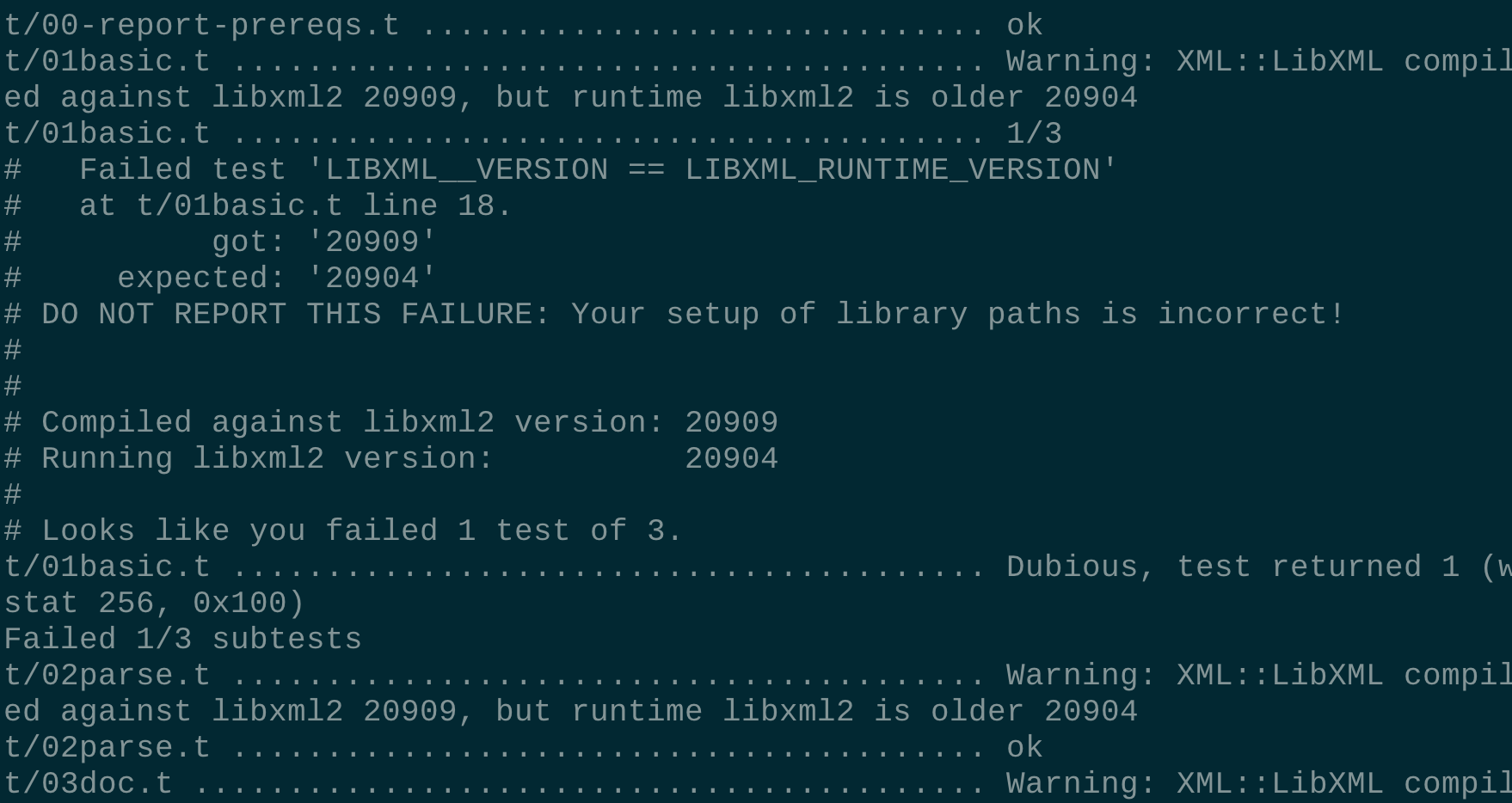 t/48_reader_undef_warning_on_empty_str_rt106830.t .. Warning: XML::LibXML compiled against libxml2 20909, but runtime libxml2 is older 20904