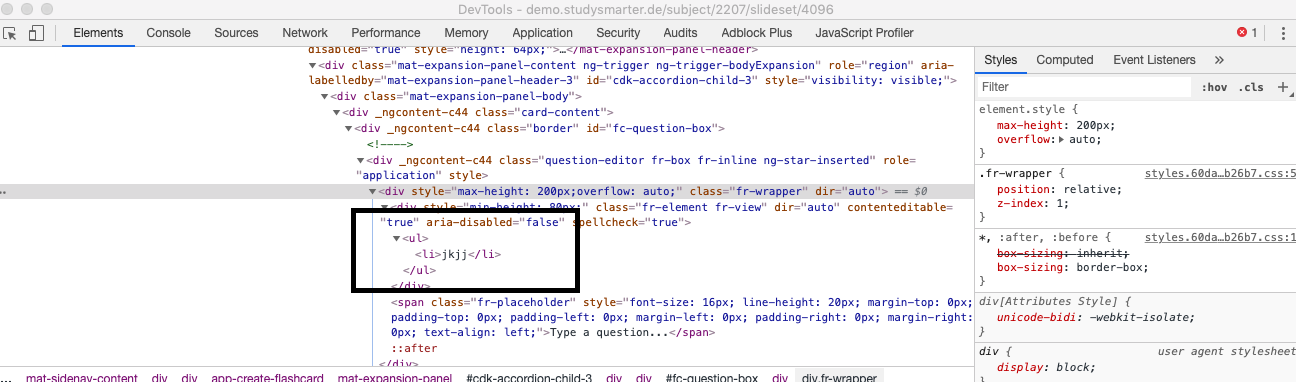 但是,当我在froala-编辑器中从fr-包装器类中移除溢出项(属性)时,我可以看到列表项点如下所示。