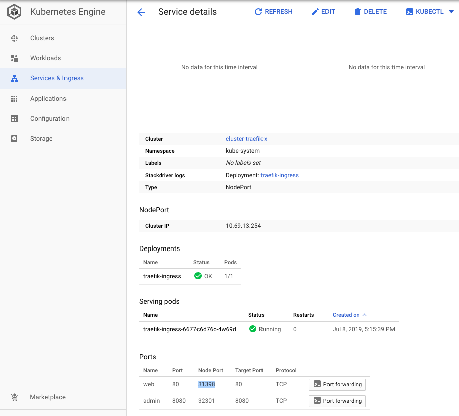 # gcloud container clusters get-credentials $CLUSTER_NAME --zone europe-west4-c --project $PROJECT && kubectl port-forward --namespace kube-system $(kubectl get pod --namespace kube-system --selector="k8s-app=traefik-ingress-lb" --output jsonpath='{.items[0].metadata.name}') 8081:80 # HTTP