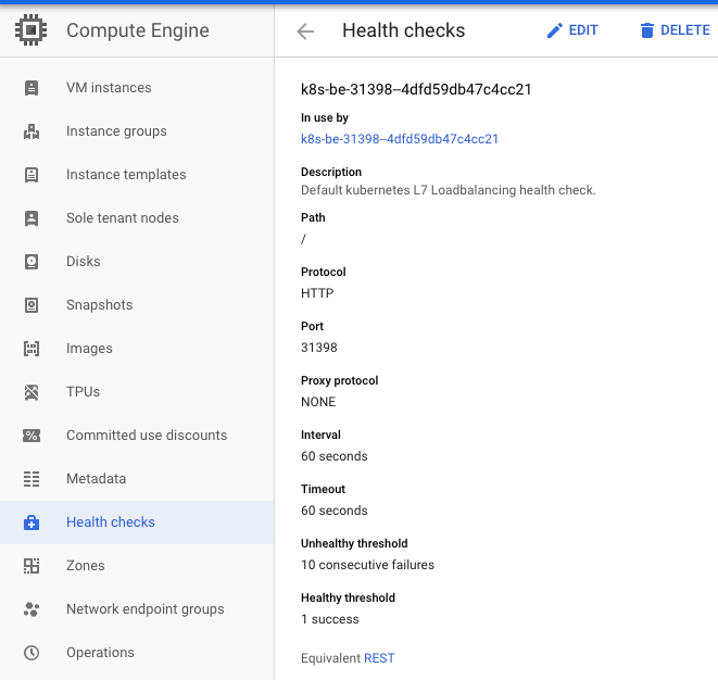 1)是否有人删除允许GCP健康检查器访问您的IP的规则?(该规则应该是自动创建的,但有时“安全人员”会删除这些规则。