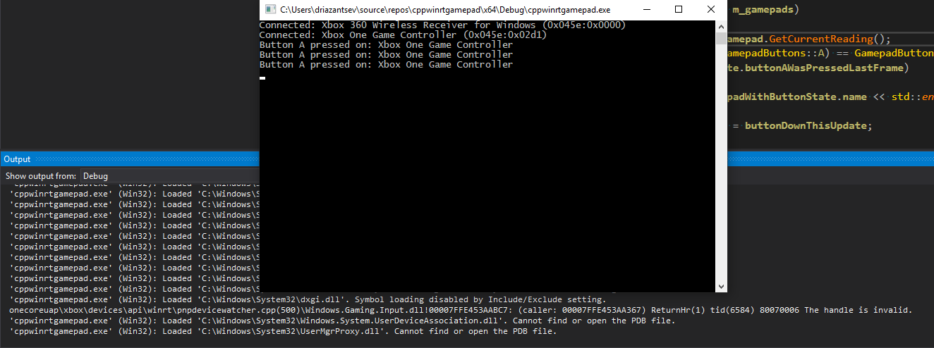 代码在这里:https://github.com/DJm00n/cppwinrtgamepad
