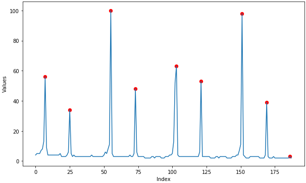 argrelextrema(x, np.greater)产出: