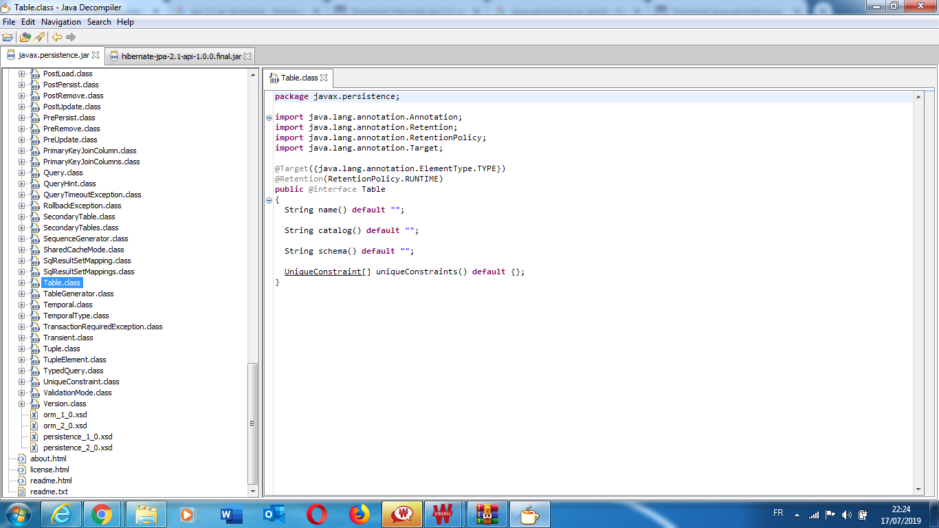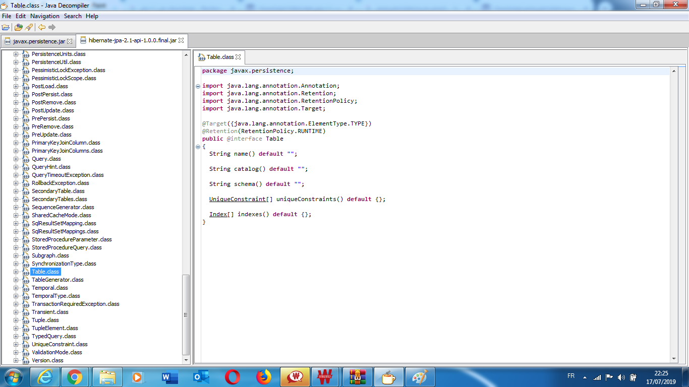 第一个图像是javax.persistence.jar接口表的源代码。如您所见,没有方法indexes()。