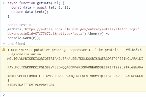 const test = getData('https://www.uniprot.org/uniprot/E5G0U9.fasta').then((r) => console.warn(r));test.html: