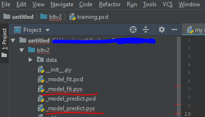 PyCharm Community (CE)不识别少数Cython,如下图所示( PyCharm红色标记在文件名下)。你能告诉我我能做什么吗?