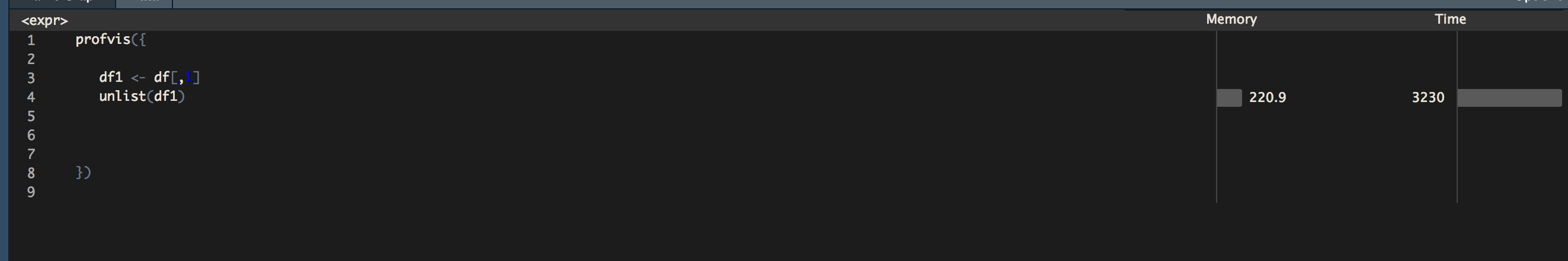 此外,如果我们执行profile执行,unlist步骤将占用更多的内存和时间。