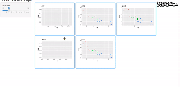sliderInput(inputId = 'NrOfPlots', label = 'Nr of Plots', min = 1, max = 20, value = 1)