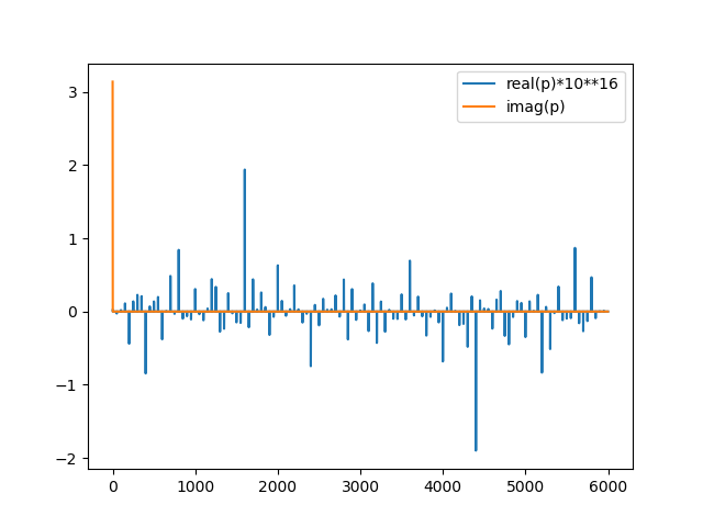 ...: plt.plot(p.real*10**16, label='real(p)*10**16')