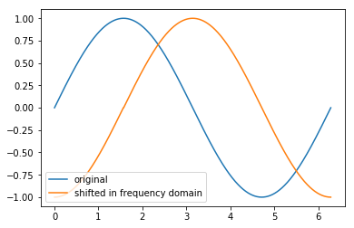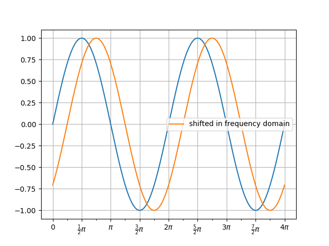...: return np.fft.fft(s) 让我们画一个信号和一个移位的信号