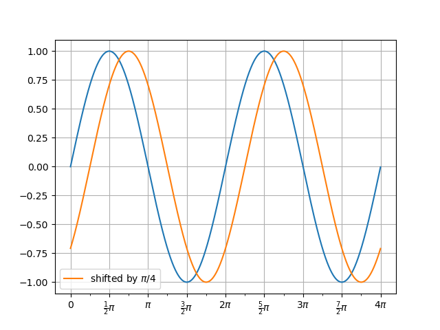 In [69]: a.plot(t, v1, label='shifted by $\\pi/4$');