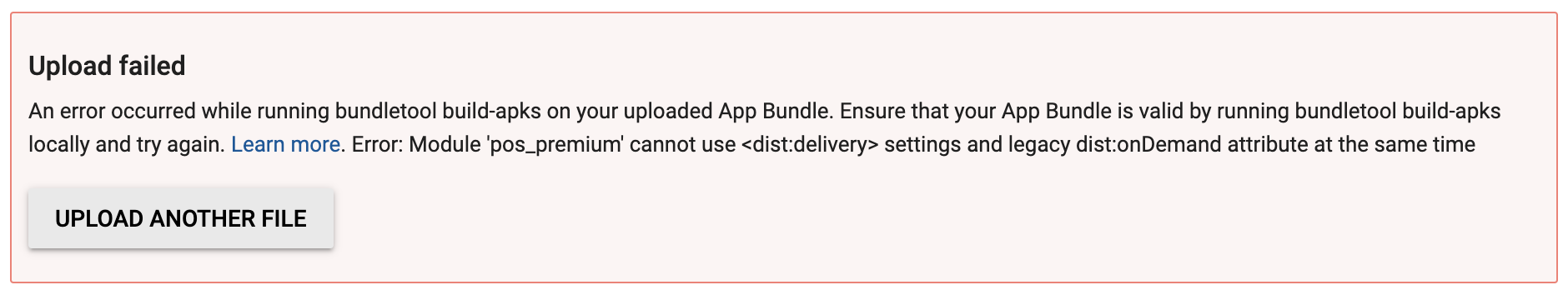 我测试了在没有动态交付的情况下上传我的应用程序包,它们上传得很好,所以我认为它一定是特定于这个特性的。然而,当我用动态模块上传包时,它总是会让我给包取一个名称,然后它会说“上传失败”。
