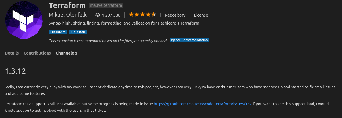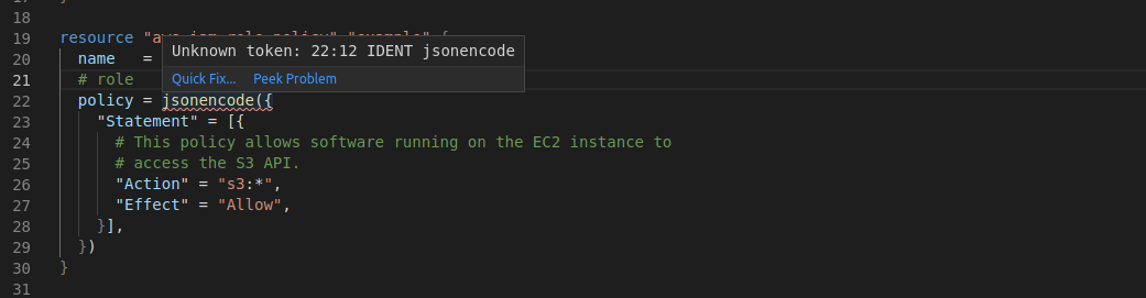 我是新的地形使用vs代码和" terraform“扩展从Mikael。