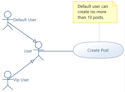 这几乎是正确的。你应该用花括号写这篇文章。这将证明它是一个制约因素。此外,您应该为Default User使用正确的大小写。最终,您也可以将约束链接到参与者。是的,你可以这样继续下去。也许,Rate Post是另一个用例。想想看。