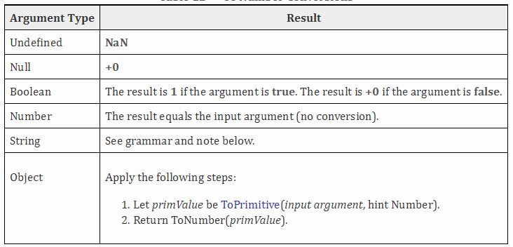 这是一个算术表达式。根据ECMAScript语言规范,在算术表达式中,不同类型的转换如下: