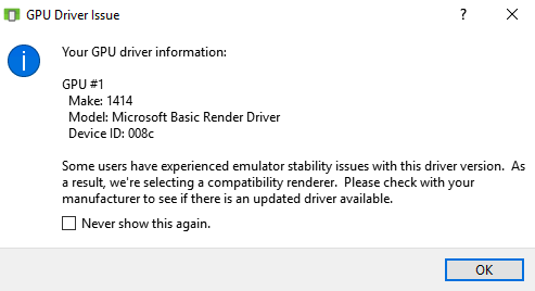 据mesa win GitHub回购的所有者说,他可以复制GUI消息潜水员的抱怨,并且仍然成功地运行模拟器--当他的机器模拟VM的状态时。