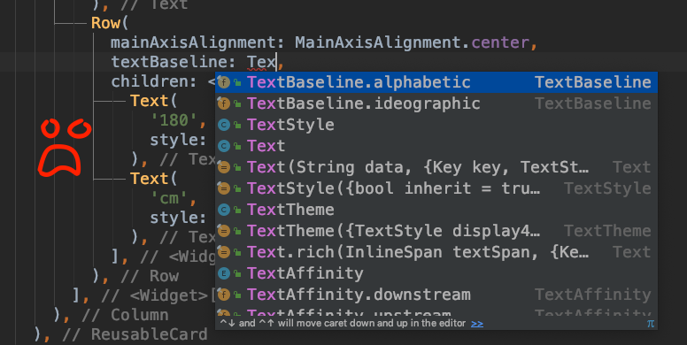 我正在学习使用Android的颤振教程。教师的屏幕显示了比我的环境更详细的工具提示/提示。