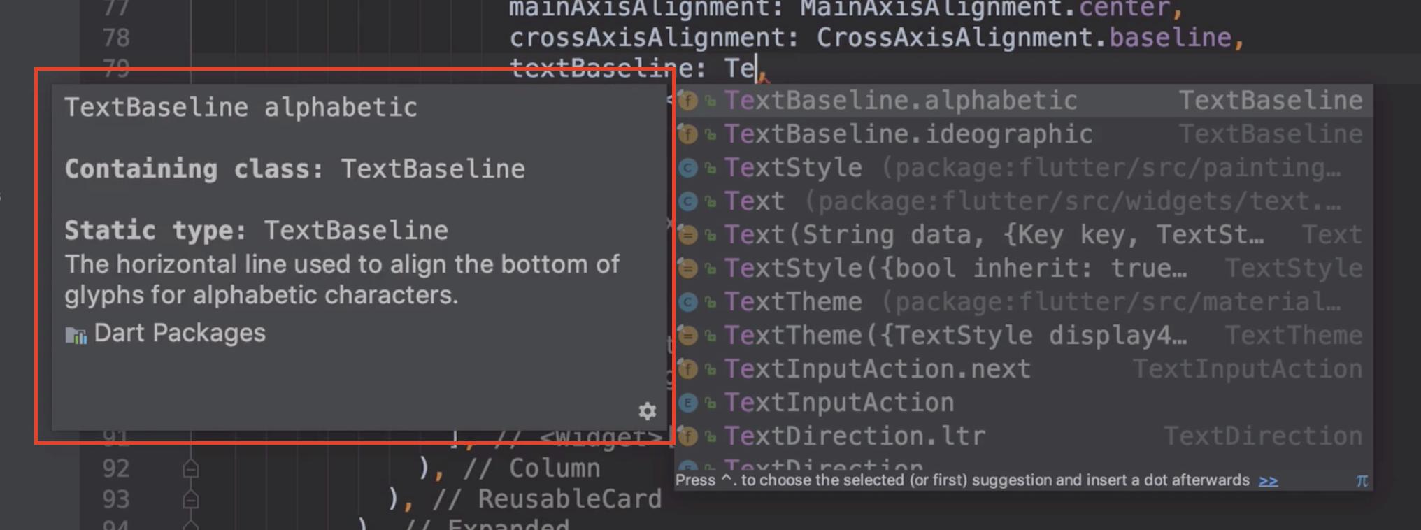 在基本代码完成打开后(Control + Space),然后单击Control +Q (Win/Linux)或Control +J (Mac)打开,这将使您的屏幕显示为您的教员。或者,只需按最后一个键盘快捷键,只需查看快速文档查找。