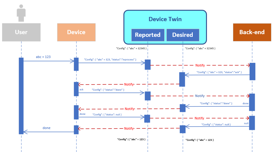 基于此通知、版本控制和设备双元数据,可以以可靠的方式将状态从一端传输到另一端。注意,轻量级状态机必须在每个端实现,例如由通知更改触发的设备和后端。