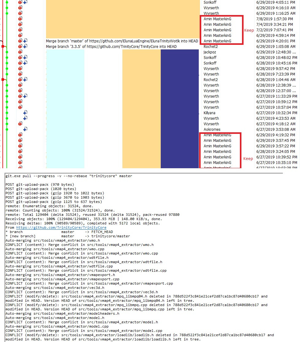 ElunaTrinityWotlk是来自TrinityCore的一个克隆,可以添加一些新特性..。看看ElunaTrinityWotlk的提交,我不再需要ElunaTrinityWotlk特性--切换到TrinityCore分支3.3.5,我只需要将自己的更改与ElunaTrinityWotlk的TrinityCore删除提交合并。