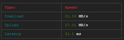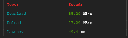 在下载和上传两个节点时,每个节点的最小合适带宽为1GB/s。在进行速度测试时,它显示了下载速度100-680 Mb/s和相同节点的上传速度67-138 Mb/s (下面的截图是在30秒内完成的)。因此,目前的带宽太小和不稳定。但是我需要稳定的带宽,从1GB/s开始。