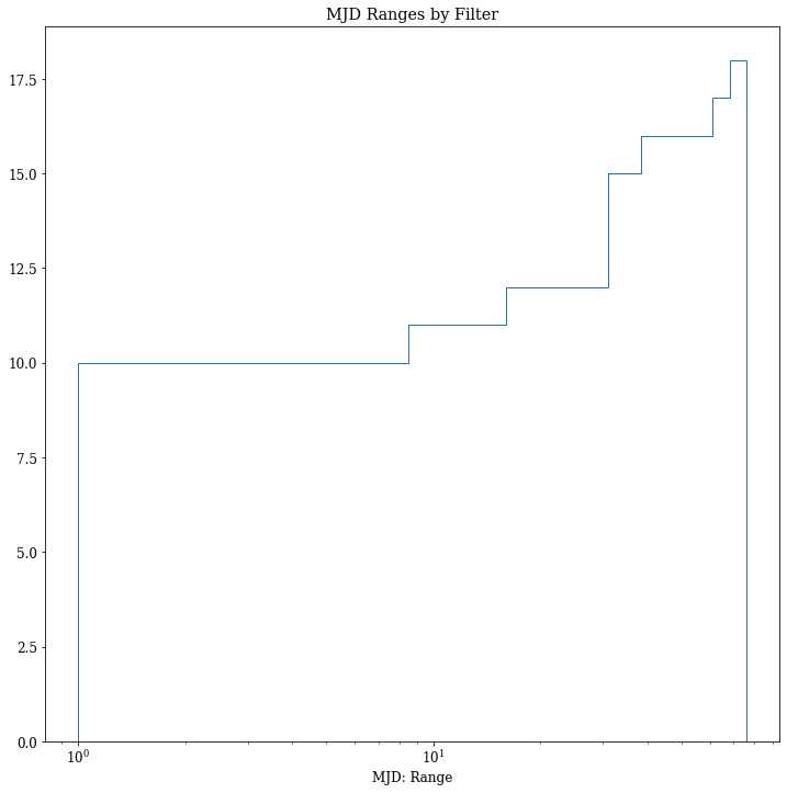 plt.title("MJD Ranges by Filter")