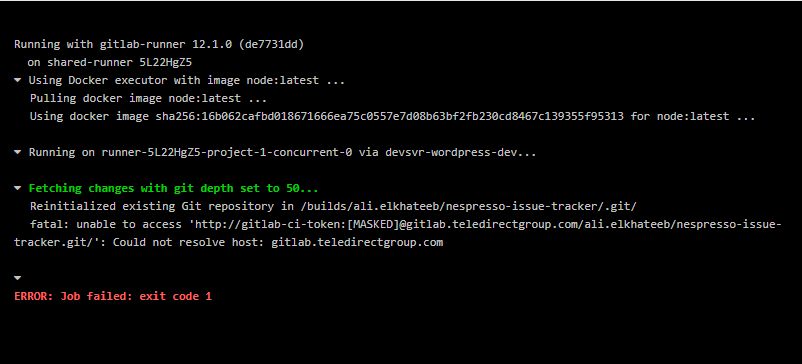 这是DNS问题。您的运行程序无法解析GitLab服务器的主机名- gitlab.teledirectgroup.com。如果您的本地工作站的主机文件是手动设置的,还是将其设置为“适当的”主机名,那么您是否设置了GitLab主机名?