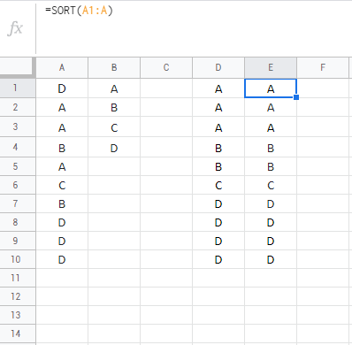 =SORT(A1:A)