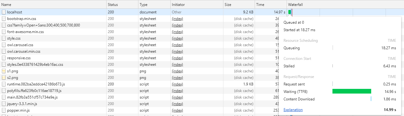 当我以角度通用的方式运行我的应用程序时,我看到了TTFB的巨大差异。ssr比常规的角度指令花费更多的时间。如何用角度通用服务器端渲染来改进TTFB?
