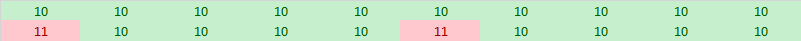 我创建了一个xlsx文件,其中两行表示真实(上行)和算法预测的重复次数(下行),如图中所示:
