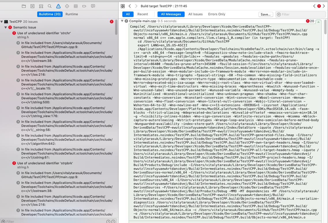 /Applications/Xcode.app/Contents/Developer/Toolchains/XcodeDefault.xctoolchain/usr/include/c++/v1/string.h:74:64: Use of undeclared identifier 'strchr'