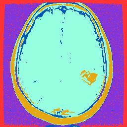 val image_array = mri_healthy_brain_clusters_df.select("prediction").rdd.map(f => f.getAs[Int](0)).collect()最后,image_array包含65536个位置,每个位置都包含自己的分类。