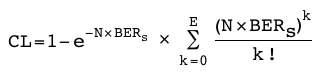 术语e^(-N*BER_s) *sum(.)第二个方程是参数为lambda = N*BER_s和k= E的N*BER_s,这个函数是在scipy.stats中实现模。因此,我们可以按以下方式计算置信度: