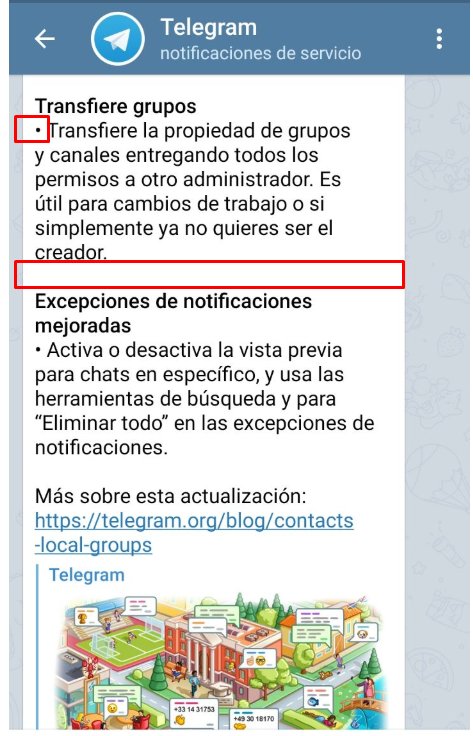 parseMode: ParseMode.HTML);它能很好地工作,但我想使用“新行”和“列表”。我在电报官方通知上见过他们,就像在这张照片里一样: