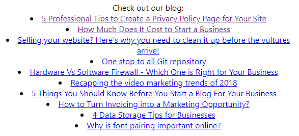 Check out our blog: <a target="_blank" href={this.state.recentBlogPost.url}>{this.state.recentBlogPost.name}</a>