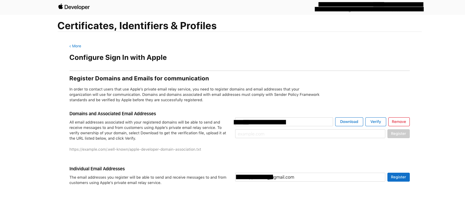 https访问。http不起作用。wwww。上面提到的示例url必须服务于apple-developer-domain-association.txt文件,而不需要任何重定向。提示:如果您使用apple-developer-domain-association.txt为www服务,则必须在developer.apple.com上注册域www.{YOUR_DOMAIN}白色配置登录和苹果配置。要做到这一点,您必须确保www.{YOUR_DOMAIN}是符合SPF的。