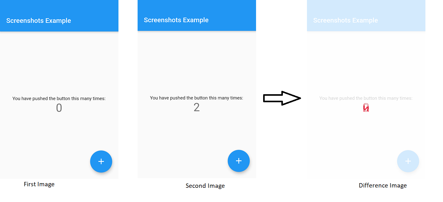 我的要求是比较这些图像,并突出显示在另一个图像差异图像中的差异区域。我试图实现基于屏幕截图的UI测试在颤振和需要失败的测试用例,如果有任何不同的两个图像。