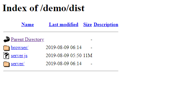我正在尝试使用Angular-7 Server Side Rendering 运行产品,具体步骤如下: