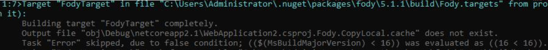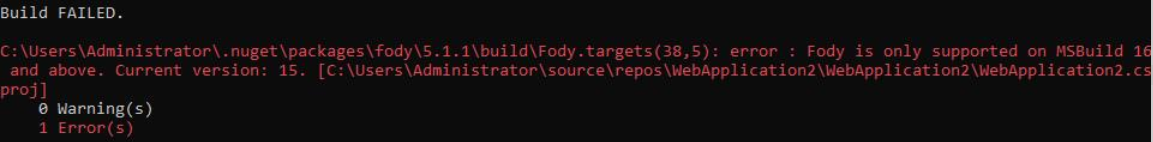 它采用的MSbuild版本是16。因此,它满足了底层fody文件的定义: