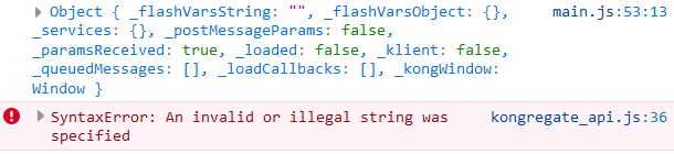 SyntaxError:在kongregate_api.js:36中指定无效或非法字符串